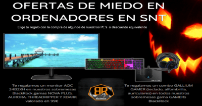 SNT quiere participar contigo todo este fin de semana a ¡TRUCO O TRATO! Y hemos preparado para ti unas sorpresas excepcionales, nuestras ofertas en ordenadores por helloween. ¡ELIGE TRUCO O TRATO!Ofertas en ordenadores por Halloween ¿Qué prefieres que te regalemos un monitor o un combo de teclado, alfombrilla y auriculares para gamers?TRUCO… te regalamos un monitor AOC 24B2XH en...